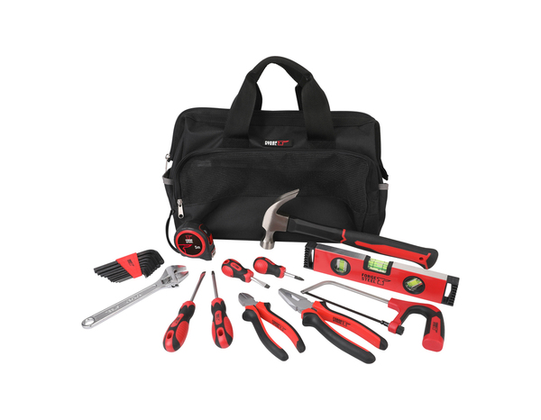 Le sac à outils Forge Steel 22 pièces est un ensemble complet et pratique pour transporter et organiser vos outils. Conçu avec des matériaux robustes, il contient une sélection d'outils essentiels pour tous vos travaux de bricolage ou professionnels. Ce sac à outils est parfait pour les déplacements sur chantier grâce à sa solidité et son design ergonomique. Type de produits : Sac à outils Marque : Forge Steel Nombre de pièces : 22 outils Matériau du sac : Tissu renforcé Composants inclus : 2 tournevis plats 1 tournevis PH#2 1 tournevis PZ#2 1 Pince diagonale 1 Pince universelle 1 Jeu de clés hexagonales de 10 pièces 1 mini scie à métaux 1 Mètre ruban 5 m 1 Marteau arache clous 1 niveau à bulle 1 Clé à molette Informations fournisseurs : Nom : Kingfisher International Products B.V. Adresse : Rapenburgerstraat 175E, 1011 VM Amsterdam, The Netherlands Site web : www.kingfisher.com/products