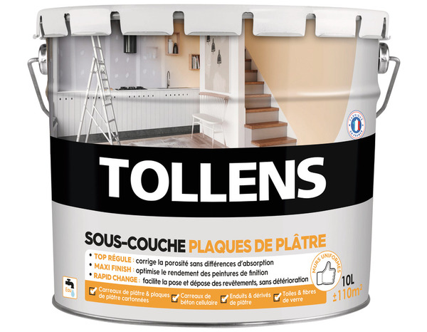 Rated 3 de 5 de par Tollens plaque platre sous couche La sous couche universelle Tollens couvre beaucoup mieux que la spéciale plaque de platre