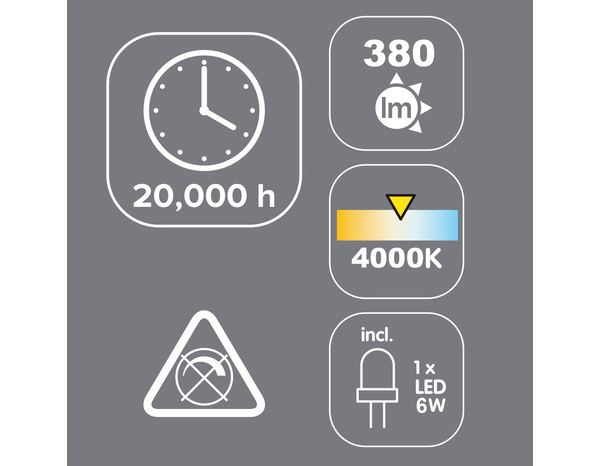Normes : Classe 2, IP20, EN 60589-1:2015, EN 60598-2-2:2012, Approuvé CE.