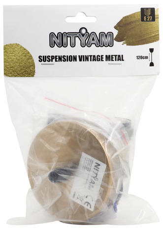 Suspension E27 IP20. Câble plastique, longueur : 1 m. Vendue avec crochet et cheville de fixation. Douille E27. Vintage. Nos suspensions ont été conçues dans un certains nombres de styles, de finitions et de caractéristiques pour vous permettre de trouver facilement celle qui vous convient. Cette suspension vintage peut parfaitement servir de source de lumière principale. Diffuse la lumière vers le bas, parfait pour l’éclairage de votre table à manger. Non réglable. Ampoule vendue séparément. Classe de protection IEC : classe 2, réglementation DEEE.