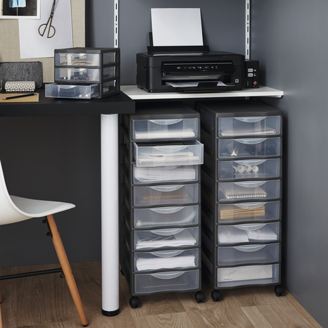 Tour de rangement grise 3 tiroirs "Kontor" L. 36 x l. 26 x H. 25,5 cm. Gris clair. Polypropylène (PP). Poids du produit : 1,40 kg. Charge (maximum) 12 kg. 3 Poignées et 3 Tiroirs. Adaptée à tous vos besoins de rangement. Nettoyer avec un chiffon humide. Tour avec système antichute et poignée ergonomique pour une utilisation simple et confortable. Modularité : peuvent être empilées pour créer un système à plusieurs étages Informations fournisseurs : Nom : Kingfisher International Products B.V. Adresse : Rapenburgerstraat 175E, 1011 VM Amsterdam, The Netherlands Site web : www.kingfisher.com/products Informations fournisseurs : Nom : SUNDIS SAS Email : contact@sundis.com Adresse : Zone Industrielle, Rue de l'Epau, 59230 SARS ET ROSIERES