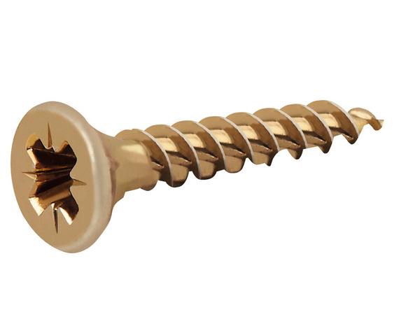 100 vis à bois premium zinguées jaunes à double tête fraisée. Empreinte Pozidriv. En acier.