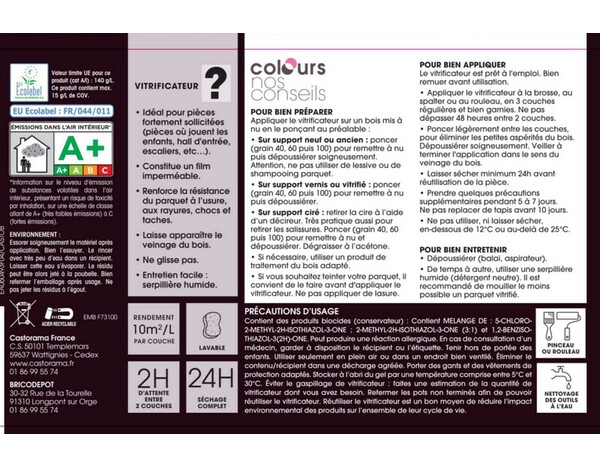 • Vitrificateur intérieur spécial parquets mat 0,75 l - Colours - Brico Dépôt