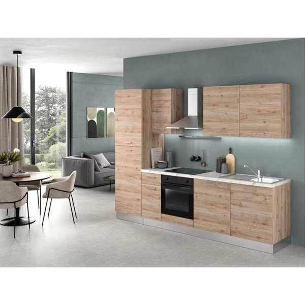 Cuisine équipée CLARITA l.280 cm décor chêne de cadis avec électroménager candy