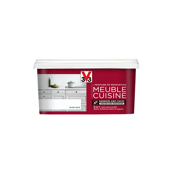 Peinture de rénovation meubles cuisine acrylique satin blanc 0,75 L