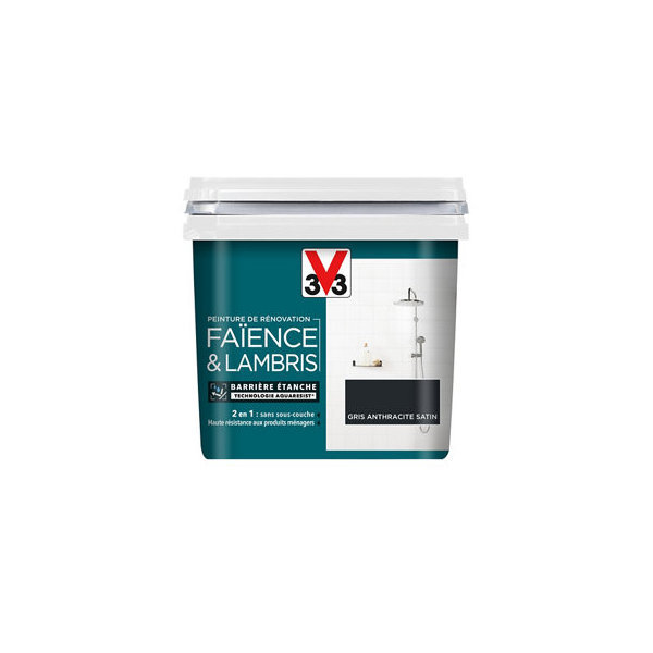 Peinture de rénovation faïence et lambris acrylique satin gris anthracite 2 L