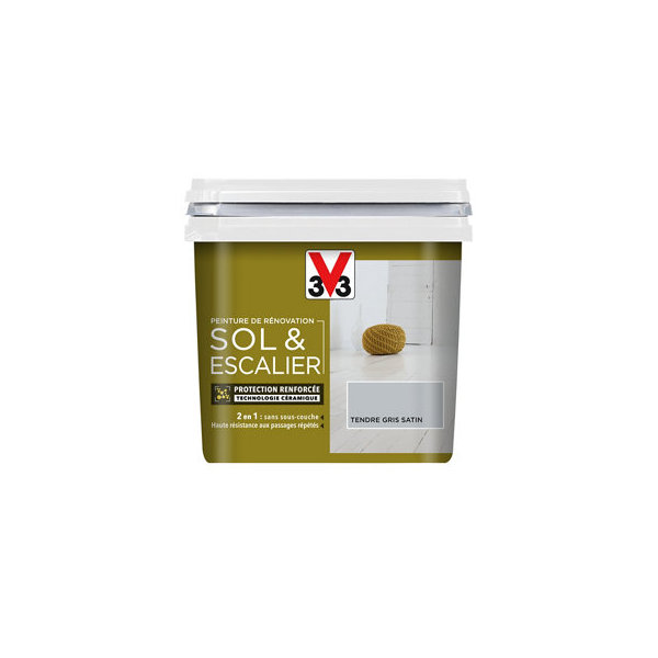 Peinture de rénovation sol et escalier acrylique satin tendre gris 2 L