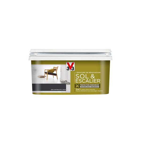 Peinture de rénovation sol et escalier acrylique satin gris anthracite 0,75 L