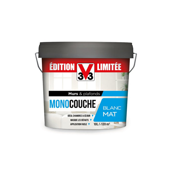 Peinture bicouche murs, plafonds et boiseries intérieure acrylique mat blanc 10 L