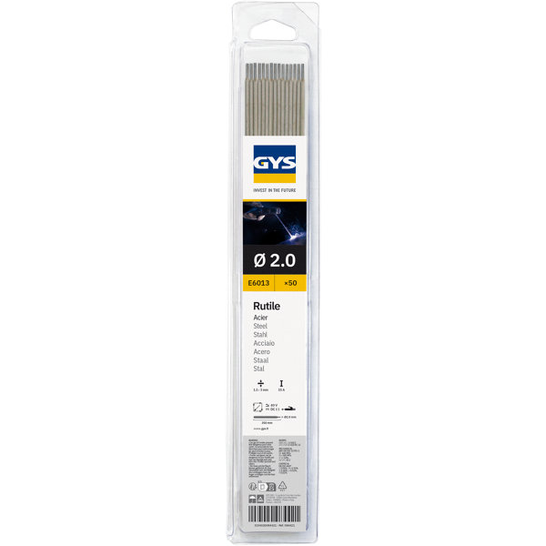 Lot de 50 électrodes enrobées rutile diamètre 2 mm Électrodes enrobées rutile universelles pour le soudage en toutes positions, d’un diamètre fin de 2 mm adapté aux travaux précis.