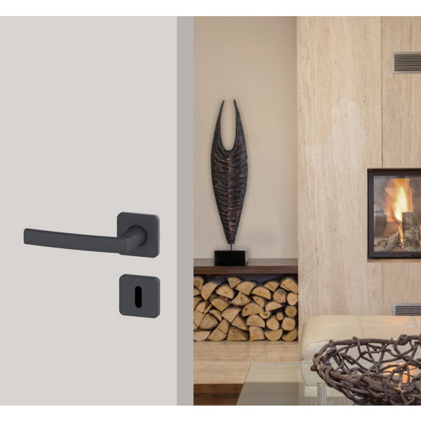 Poignée de porte sur rosace "Koya" avec trou pour cylindre - Entraxe 24 mm