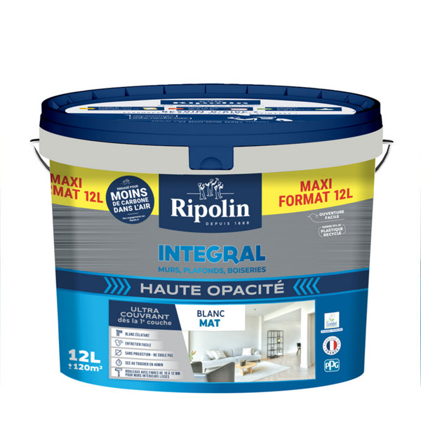 Peinture murs, plafonds, 2 en 1 avec sous-couche intégrée blanc mat - pot 12L