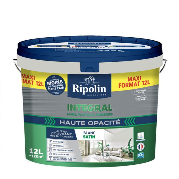 Découvrez la peinture acrylique velours Ripolin, conçue pour sublimer vos murs, boiseries et radiateurs intérieurs. Profitez d’un blanc éclatant et d’une couvrance exceptionnelle dès la première couche. Facile à appliquer, elle ne coule pas et ne projette pas, assurant un travail propre et net. Sa finition satinée apporte une touche élégante et moderne à vos pièces. Fabriquée en France, elle garantit qualité et durabilité pour un entretien simplifié.