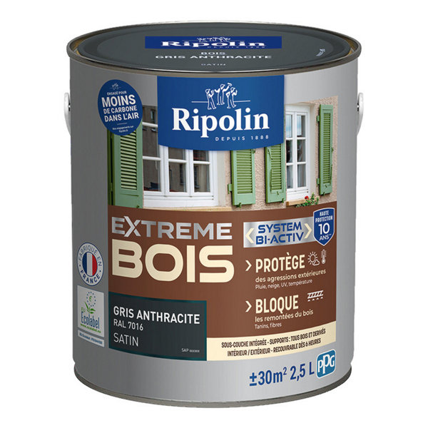 Peinture extérieur bois 2,5 L gris fenêtre satin
