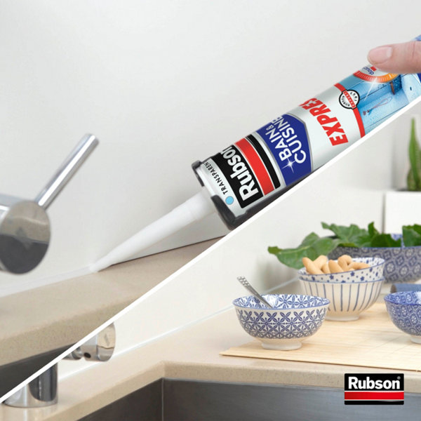 Mastic bain & cuisine express, joint silicone étanche, séchage rapide blanc, 280 ml