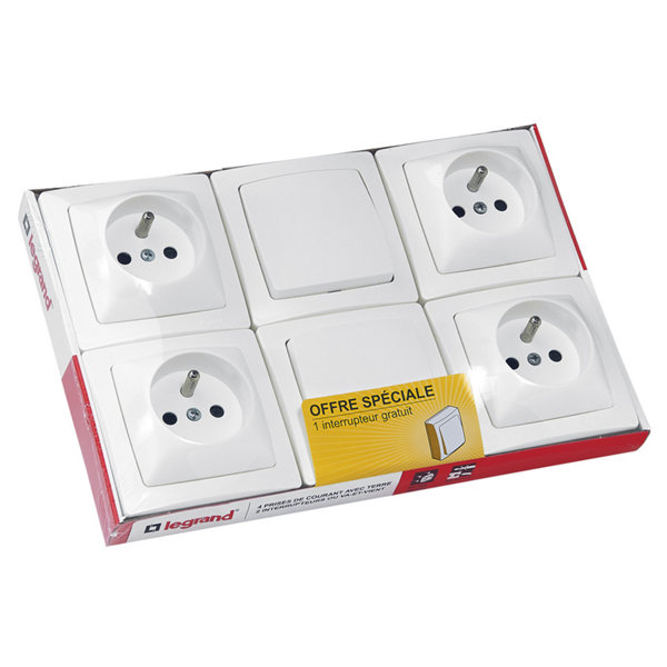 Lot de 5 prises avec terre "Asfora" blanc