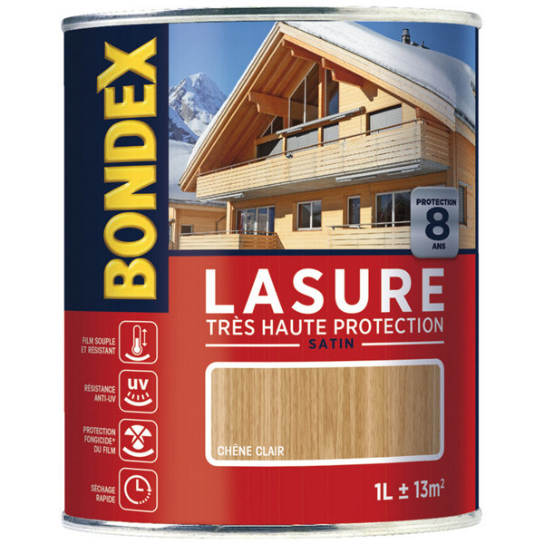 Lasure chêne 8 ans clair satin pour les ouvrages en bois 1 L