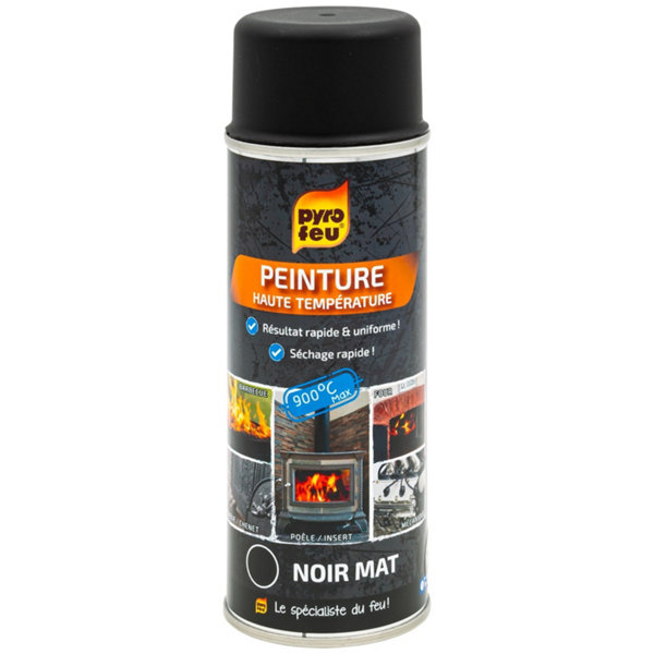 Peinture thermique noire mat - 400 ml spécialement conçue pour résister à des températures extrêmes jusqu’à 900°C. Idéale pour la rénovation et la protection des foyers, inserts, barbecues, poêles, plaques, grilles et chenêts. Sa finition mate apporte un rendu élégant tout en assurant une haute performance thermique. Séchage rapide au toucher en seulement 1 heure pour une utilisation efficace et rapide. Application facile en aérosol, couvrant une surface d’environ 1,5 m².
