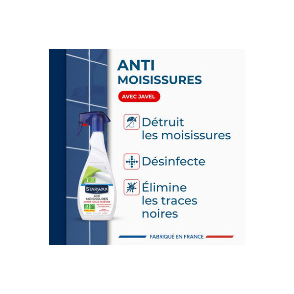 Dites adieu aux moisissures dans votre salle de bains avec le traitement anti-moisissure STARWAX. Facile à utiliser, il agit rapidement pour éliminer les moisissures sur les joints, le carrelage et autres surfaces humides. Son action désinfectante garantit un environnement plus sain et plus propre. Ce produit est idéal pour une utilisation intérieure, notamment dans la douche et la salle de bains. Fabriqué en France, il offre une solution efficace et fiable pour lutter contre l'humidité et la moisissure.