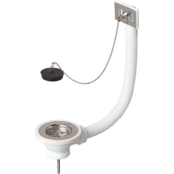 Bonde pour évier 1 bac et trop-plein Ø 90 mm (synthèse, inox ou grès)