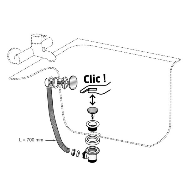 Bonde quick-clac pour vasque avec trop-plein et siphon réglable - Ø 32 mm