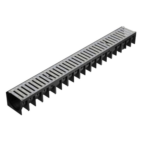 Caniveau en béton polyester (caniveau) et acier galvanisé (grille caillebotis) 1000x150x170 mm