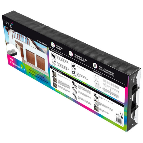 Lot de 3 caniveaux polypropylène et grille acier galvanisé - L. 1 mètre