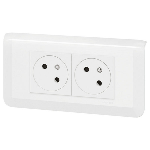 Prise double avec terre surface double inclinée 45° "Mosaic" blanc