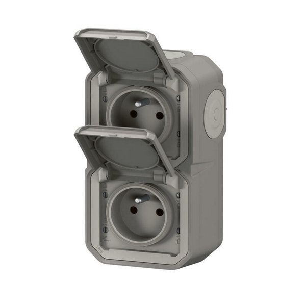 Prise de courant avec va-et-vient vertical "Plexo" complet saillie - Gris