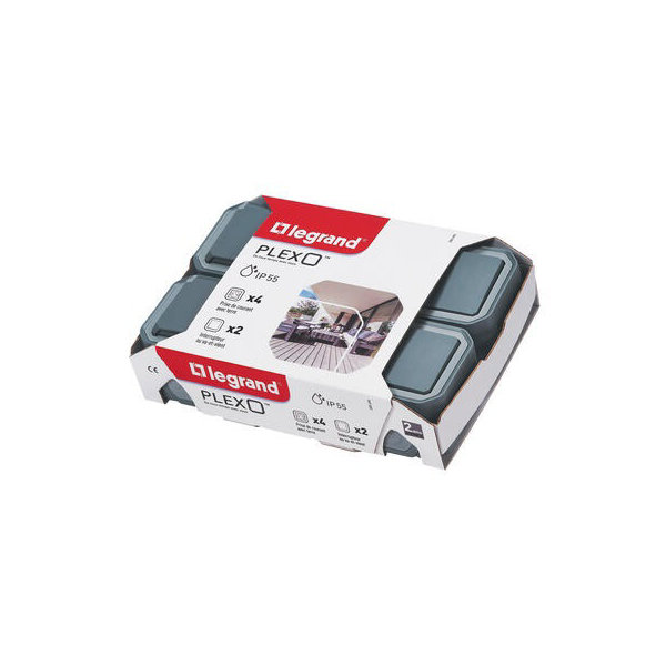 Double interrupteur va-et-vient ou poussoir "Plexo" complet saillie - Gris