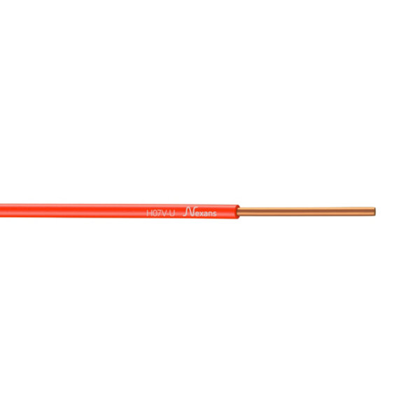 Fil électrique H07VU 1,5 mm² orange, idéal pour vos installations domestiques. Parfaitement adapté aux circuits d’éclairage avec une intensité maximale de 16 ampères. Protégé par une gaine en PVC résistante à la chaleur et aux courts-circuits. Longueur généreuse de 100 mètres pour répondre à tous vos besoins. Facile à poser en intérieur, sous moulure ou dans des gaines adaptées.
