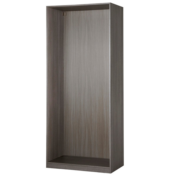 Caisson en panneau de particules avec revêtement papier décor chêne grisé, ép. 18 mm. Fond en panneau de fibres de bois haute densité. Rangs de pré-perçage sur la hauteur. Quincaillerie fournie. Vendu en 2 colis.