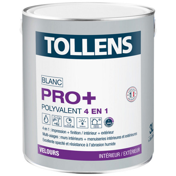 Peinture bicouche murs et plafonds Pro+ intérieure acrylique velours blanc 3 L