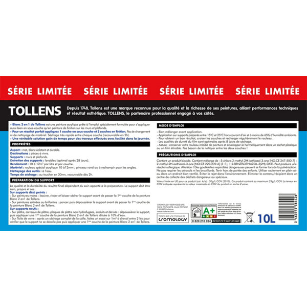 Peinture Blanche intérieure 2en1 sous couche intégrée Mat 10 L