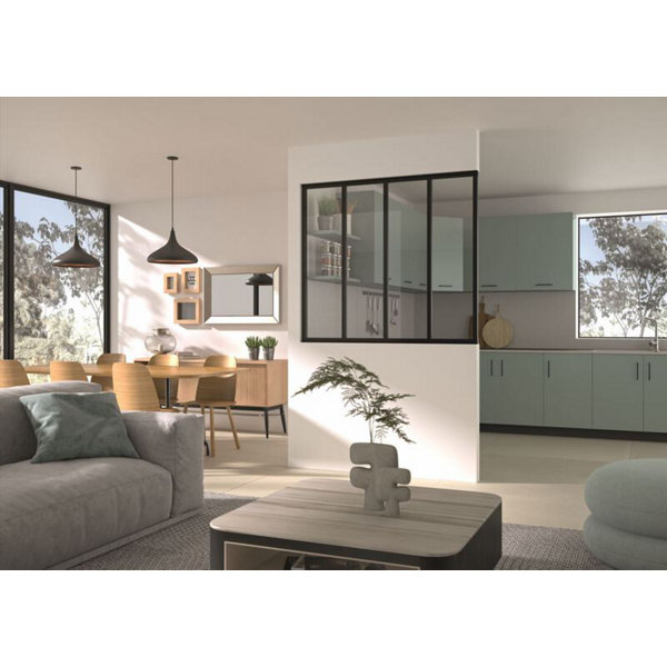 Verrière Optimum 4 vitrages noir, idéale pour sublimer vos intérieurs avec style et luminosité. Sa structure en aluminium mat noir sablé apporte une touche moderne et élégante. Conçue pour une pose fixe, elle offre une grande surface vitrée pour maximiser la lumière naturelle. Fabriquée en France avec du verre trempé de haute qualité, elle allie robustesse et esthétique. Simple à installer, cette verrière est parfaite pour créer des espaces ouverts tout en conservant une séparation visuelle.