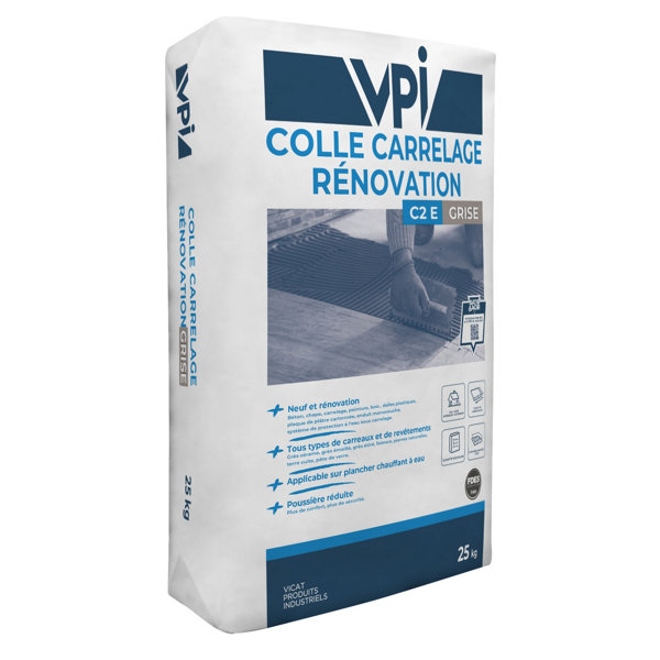 - Colle grise spécialement conçue pour la pose de carrelage sur murs et sols, en intérieur comme en extérieur.