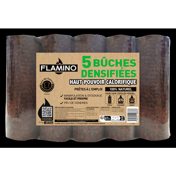 Lot de 5 bûches bois densifié - 9,65 Kg
