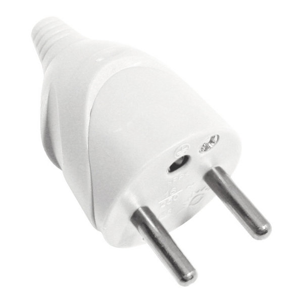 Fiche mâle 2P 6A de couleur blanche