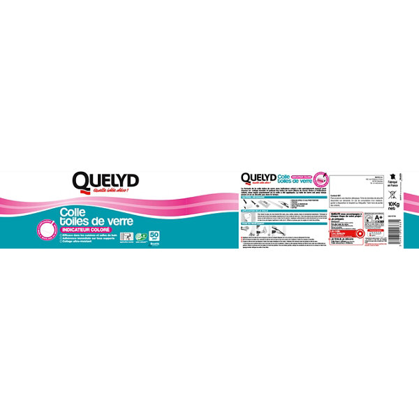 Colle en pâte avec indicateur coloré pour toutes les toiles de verre. L'indicateur coloré est rose à l'application et disparaît au séchage. S'applique directement sur le mur. Ne projette pas. Rendement 10kg: 50m²