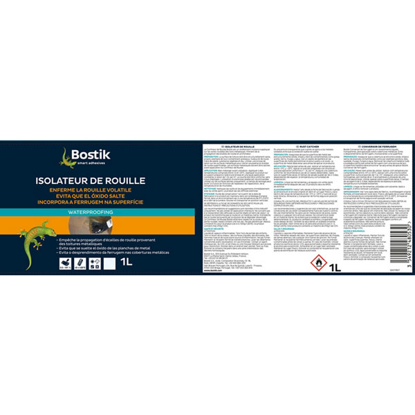 Application à l'extérieur sur des plaques de rouille. Empêche le transfert. Résistant à l'eau.