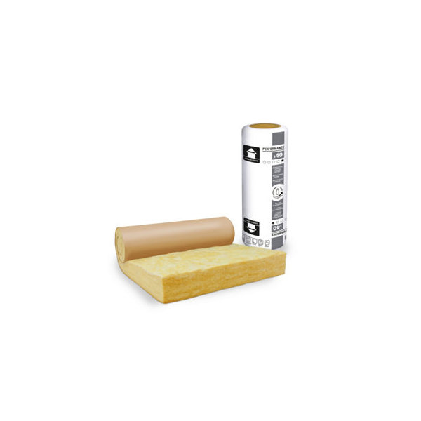 Laine de verre 100 mm comble perdu 40 R:2,5 - 10 x 1,20 m - Rouleau kraft