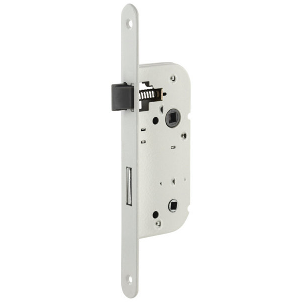 Serrure à encastrer pêne dormant demi tour époxy blanc têtière bouts ronds avec gâche