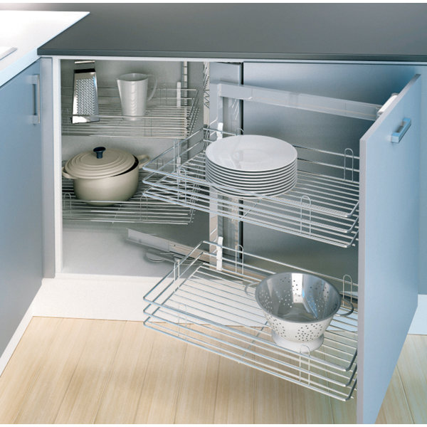Rangement coulissant gauche 4 paniers pour meuble bas d'angle 100cm