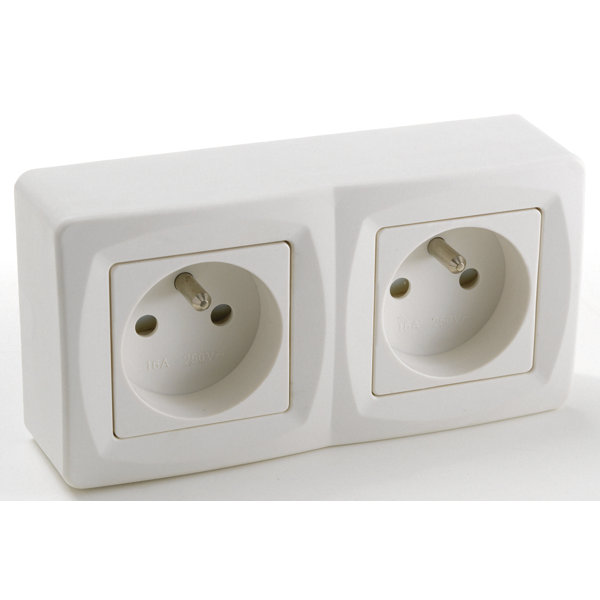 Double prise 2 points avec terre en saillie blanche "Barran"