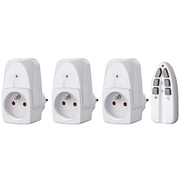 Lot de 3 prises télécommandées 25 mètres. Fréquence : 433,92 Mhz