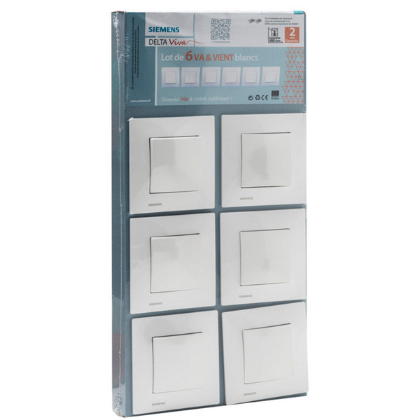 Lot 6 prises avec terre à clipser "Delta Viva" blanc