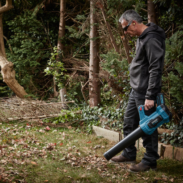 Souffleur batterie 18 V, vitesse de soufflage max : 108 km/h.
