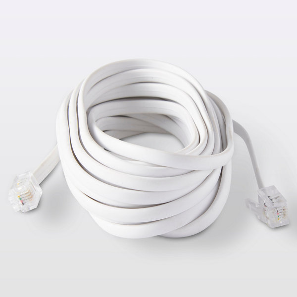 Câble RJ11 fiche plate mâle. Longueur 5 mètres. Blanc.