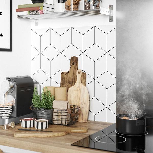 Crédence réversible polygone bois / géométrique blanc L.180 x H.60 cm x Ep. 3 mm