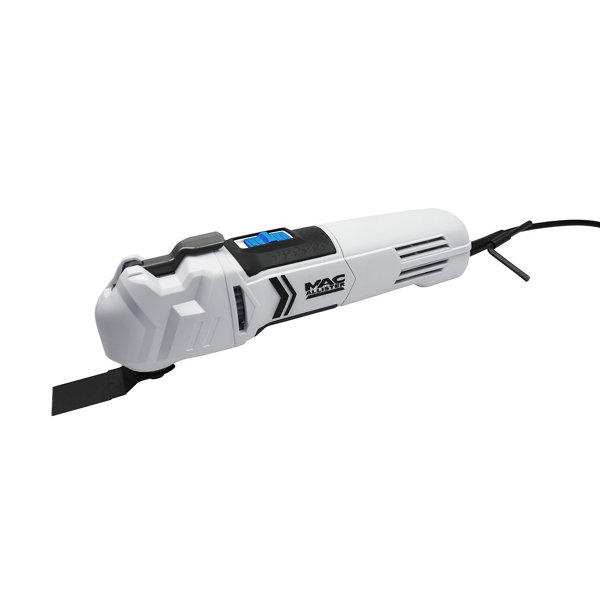 Outil multi-coupe polyvalent Mac Allister avec angle d'oscillation de 2,8 ° pour scier, racler, poncer et découper. Comprend des accessoires et une mallette de transport